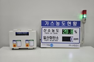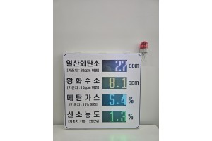 산소, 일산화탄소, 가연성가스, 메탄 산업안전보건법에 작업자 밀폐공간 등의 설치하여 실시간으로 표시하고이상 수치 시 경광등외 알림 출력합니다.